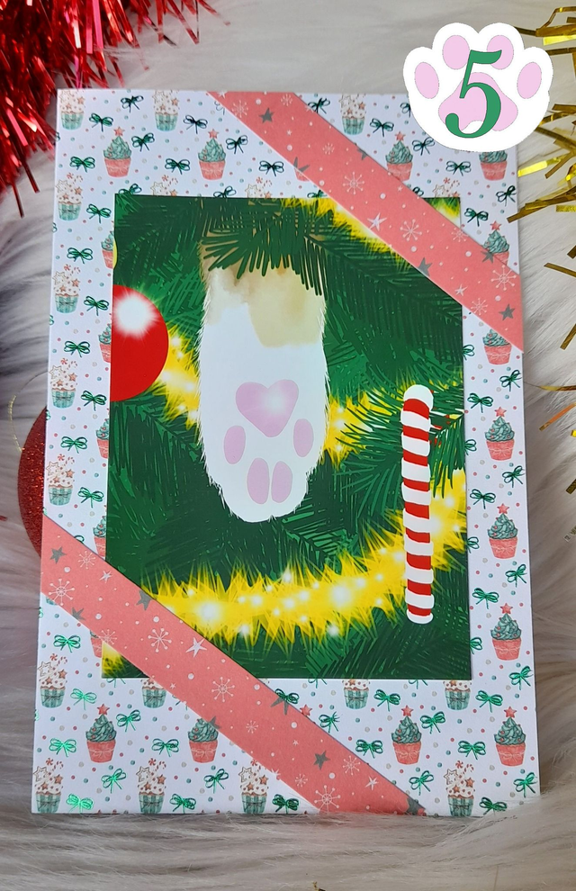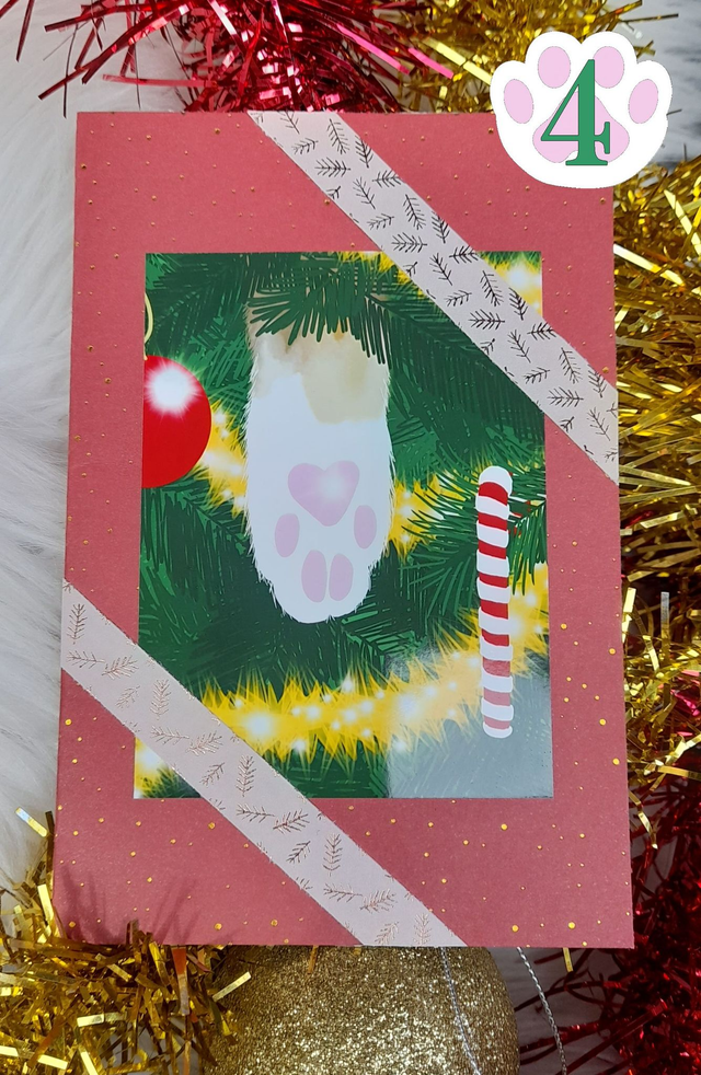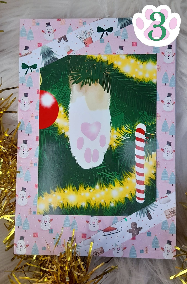 Carte de voeux Pattoune de chat dans sapin